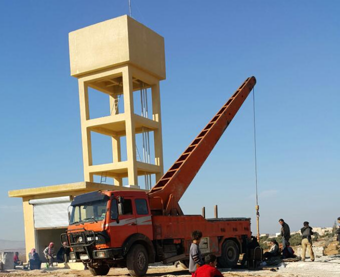 غازي عنتاب ـ الثلاثاء، 5 كانون الثاني 2015 ـ أعلنت وحدة إدارة صندوق الائتمان لإعادة إعمار سوريا اليوم عن الإنتهاء من بعض الأعمال الإنشائية الرئيسية لمشروع "إعادة تأهيل وترميم شبكة مياه الشرب في ريف حلب". وتشمل تلك الأعمال إنشاء برج جديد للمياه ومحطة ضخ جديدة وكذلك حفر وتوسيع بئر ماء في واحدة من المنطقتين حيث يعمل المشروع بشكل مكثف منذ شهر أيلول الماضي. وسيتم الإنتهاء من أعمال المشروع الحالية في المنطقة الثانية خلال الستة أشهر القادمة.