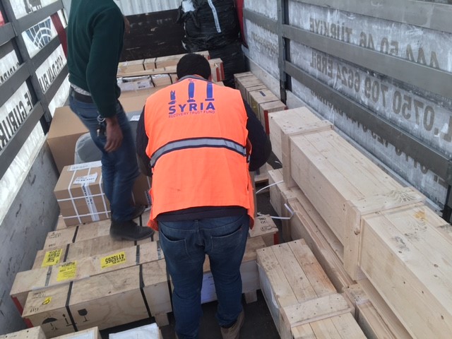 تركيا – الاربعاء، 1 شباط 2017 – سلمت وحدة إدارة صندوق الائتمان لإعادة إعمار سوريا اليوم الشحنة الأولى من مضخات مياه وملحقاتها للجهة المنفذة لمشروع "إعادة تأهيل شبكة المياه في مدينة بمحافظة إدلب – المرحلة 1". وتشمل الشحنة تسع مضخات غاطسة ومضخة واحدة أفقية الدفع ومضختين رأسيتين وثلاث مضخات لكلورة المياه. وقد تمت عملية التسليم عند نقطة الصفر على الحدود التركية-السورية بالتنسيق مع السلطات التركية.