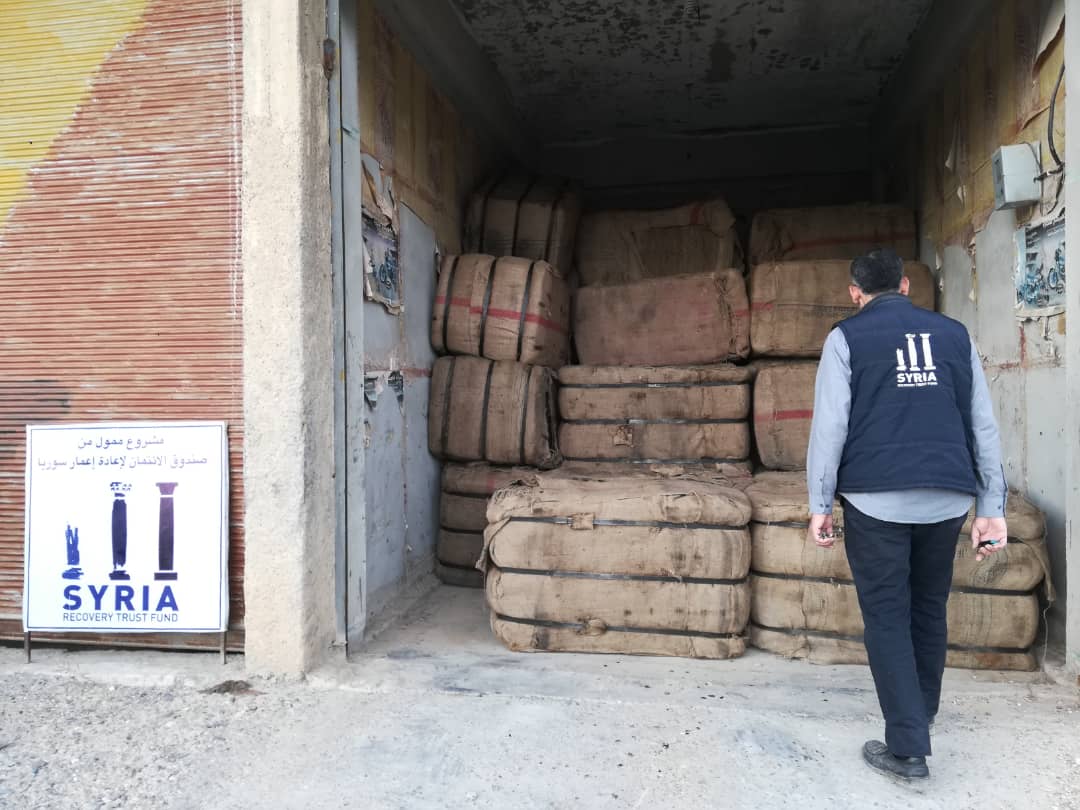 صندوق الائتمان لإعادة إعمار سوريا يوزع أكياس الخيش على المزارعين في إطار مشروع "الدعم الزراعي للمزارعين- المرحلة الثانية" في محافظة الرقة