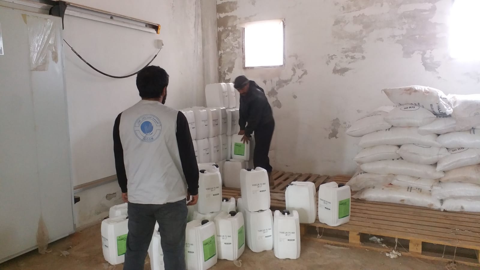 وقد تم التسليم الى شمال حلب وتضمن المواد التالية: 10.000 لتر من مبيدات الفطريات لعلاج البذور قبل زراعتها للمشروع الأول، بينما تم تسليم 1000 كجم من المبيدات الحشرية لتبخير البذور، و750 كجم من مبيد القوارض و600 لتر من المبيدات الحشرية للمستودعات وتخزين مكافحة الحشرات للمشروع الثاني.