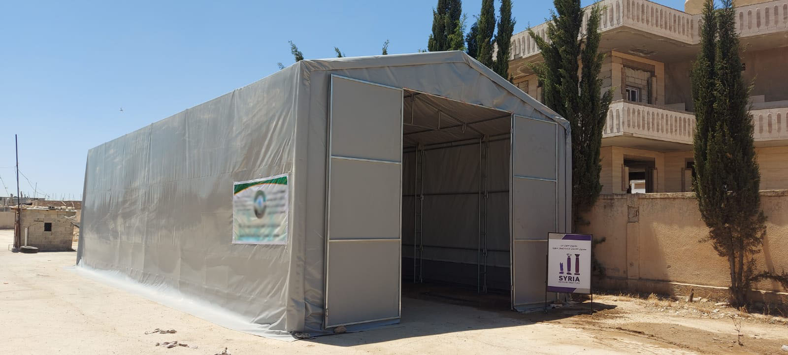 تركيا - الثلاثاء 15 حزيران,2021 - استلم المشروع الزراعي التابع لصندوق الائتمان لإعادة إعمار سوريا، "دعم إنتاج الخضار في شمال حلب"، خيمتين اليوم. وسيتم استخدام هاتين الخيمتين، التي تبلغ مساحتهما ١٥X٧ متر وارتفاعهما ٤ أمتار وتستوعب كل منهما حوالي ١٠٠ شخص، كمراكز إرشادية للمزارعين وكمرافق تخزين مؤقتة للخضروات والمدخلات خلال موسم الحصاد وقبل توزيع المدخلات على المزارعين المستهدفين.