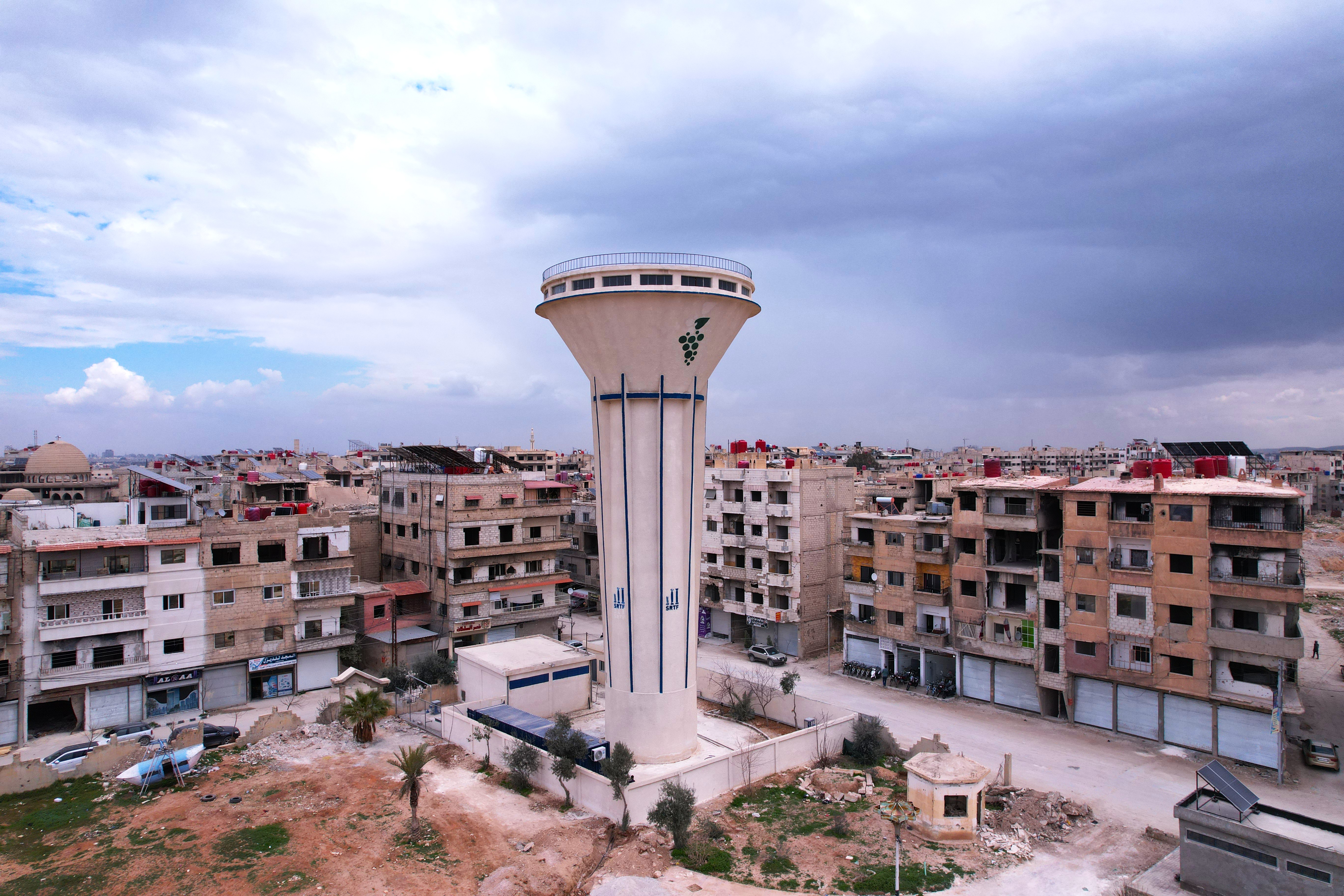 - إعادة تأهيل خزان مياه مرتفع عبر إجراء إصلاحات إنشائية، وإزالة الأنقاض، وتركيب مضخة غاطسة جديدة، وتوفير نظام كهروميكانيكي لإعادة ضخ المياه من البئر.
