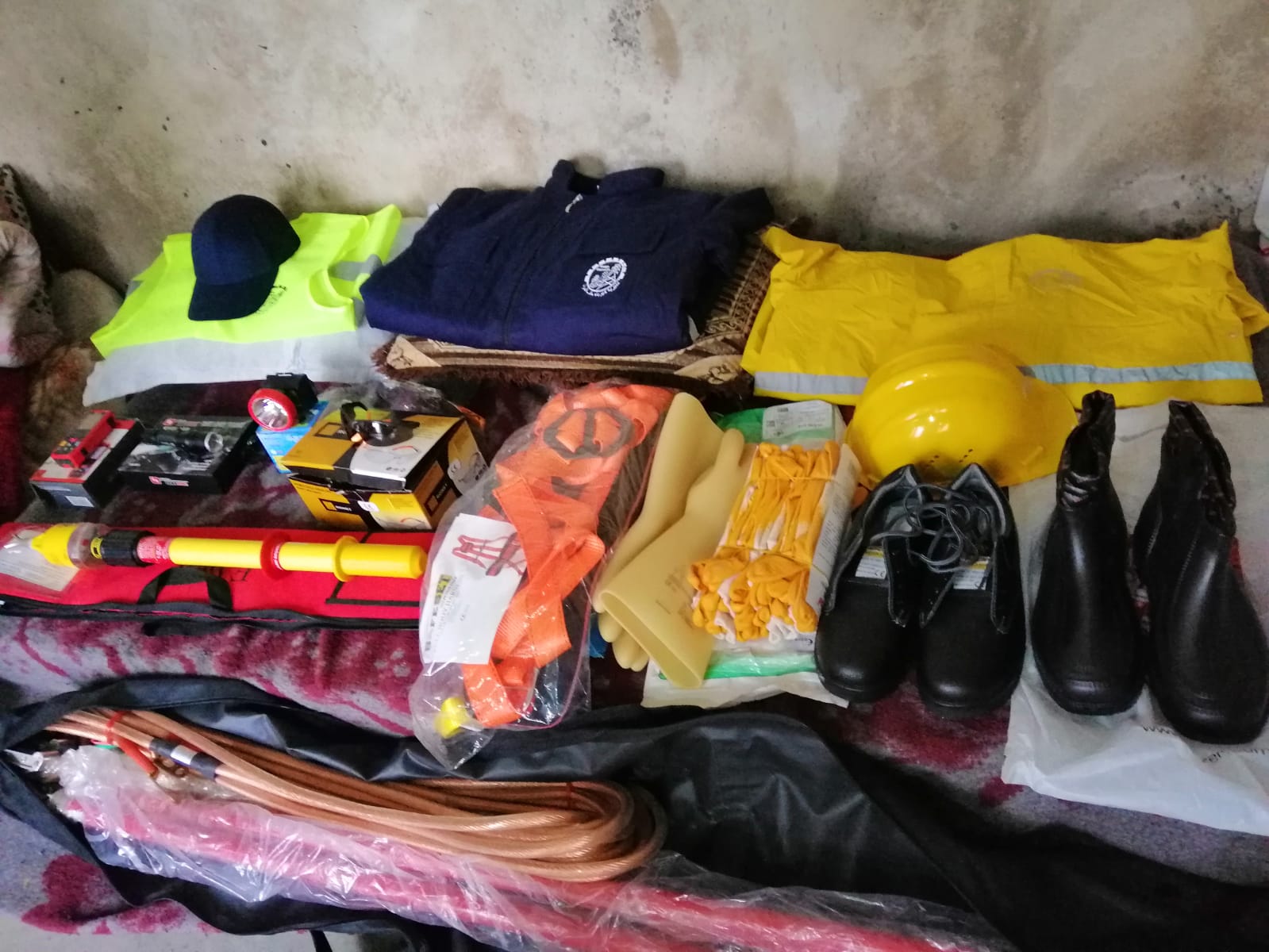 Türkiye – Tuesday, 14 January 2020 - As part of its project: “Rehabilitation of the Medium and Low Voltage Grid in Urban, Sub-urban and Rural Communities in a Northern District in Aleppo", the SRTF Management Unit (MU) delivered various protection clothing, safety tools & equipment for workers engaged in maintenance works of electricity networks in Aleppo’s northern countryside today. The protection clothes consisted of; safety glasses, helmets, reflecting jackets, protective work suits, raincoats, working & safety shoes, as well as, plastic rain boots and belts. The equipment included voltage detectors, led flashlights, concrete pole and wood pole climbers and digital laser distance rangefinders.