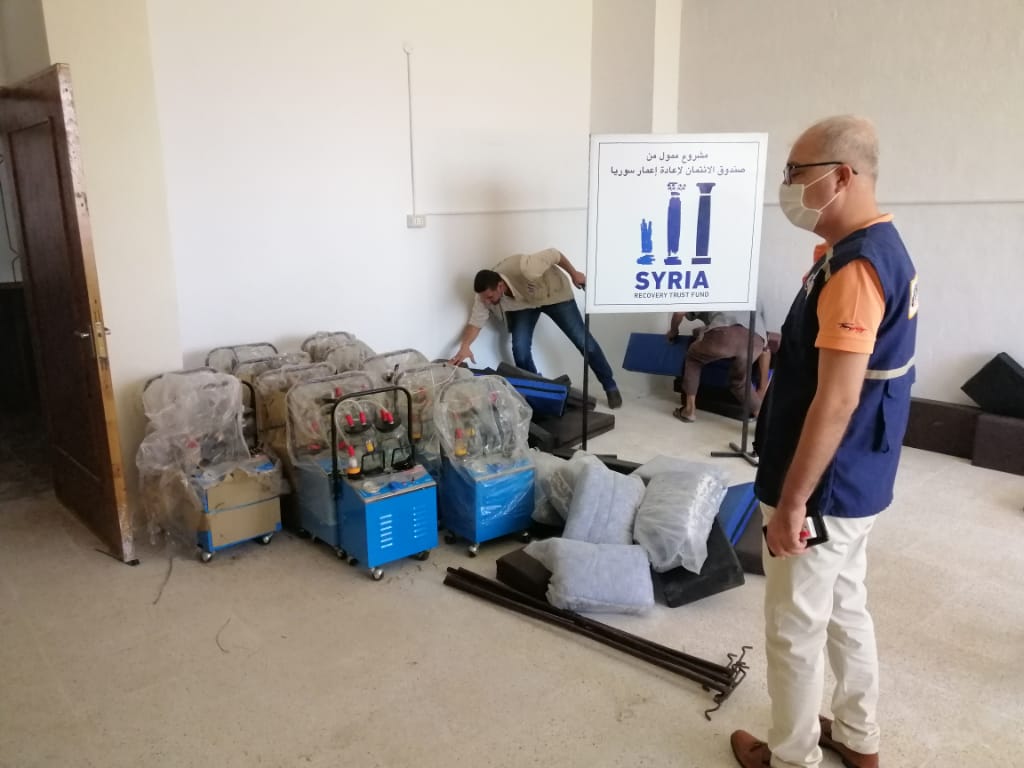 Ar-Raqqa - Wednesday, 19th August 2020 - Today, as part of the SRTF’s intervention, “Emergency Response for COVID-19 in Ar-Raqqa”, the SRTF announced the delivery of medical and laboratory equipment to combat the spread of COVID-19 in the governorate. The delivery included 20 artificial respirators with beds, as well as 140 medical beds and associated supplies, a laboratory analysis device, and other laboratory equipment and supplies. Additionally, medicines, sterilization materials, and personal protective equipment were delivered. Intervention activities are ongoing with rehabilitation works in a major hospital and the establishment of four community isolation centers, as well as seven examination and temporary isolation points that will be operational during the next few days.