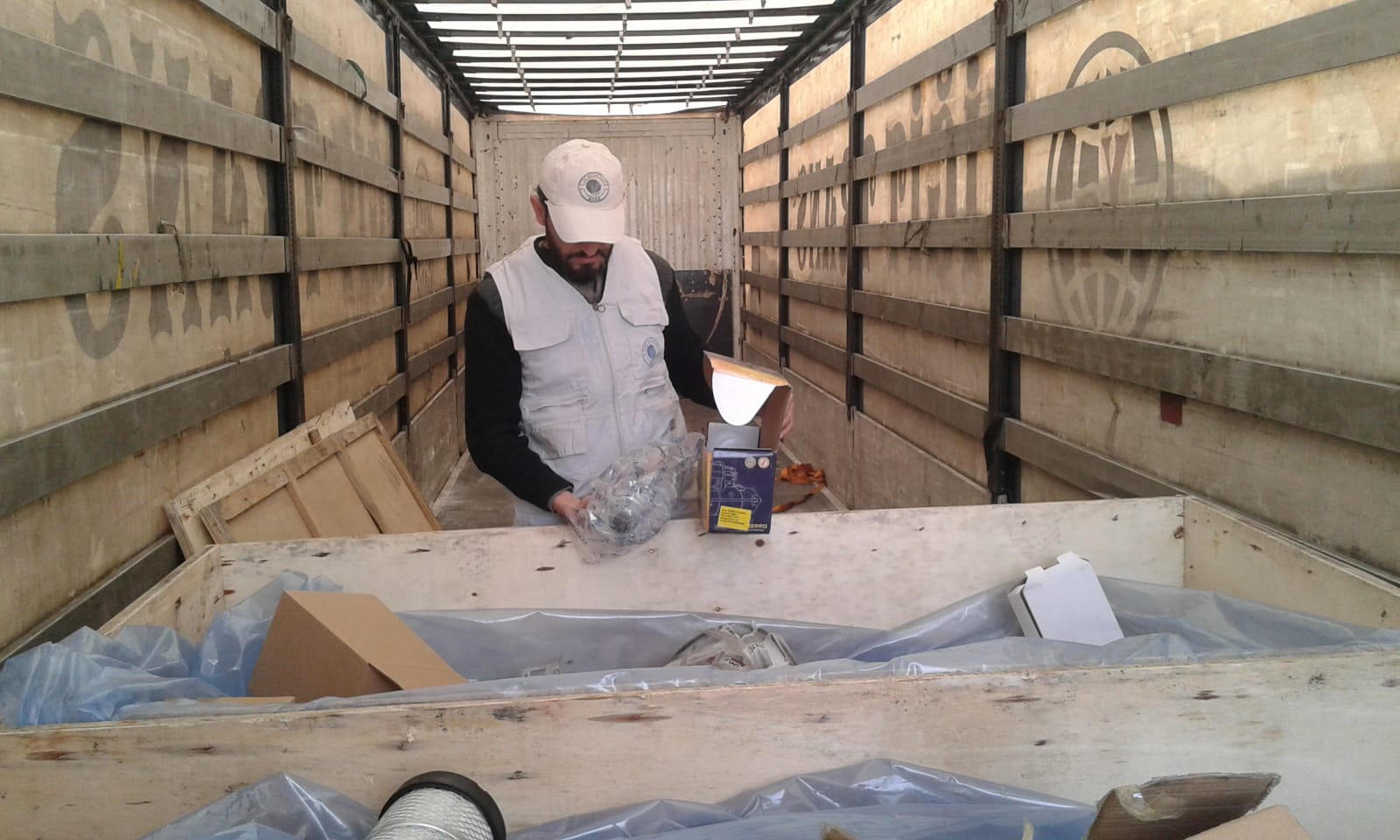 The new shipment is the first of a series of supplies comprised in the SRTF “ Rehabilitation and Expansion of the Electricity Grid of a Town in the Aleppo Governorate” project.