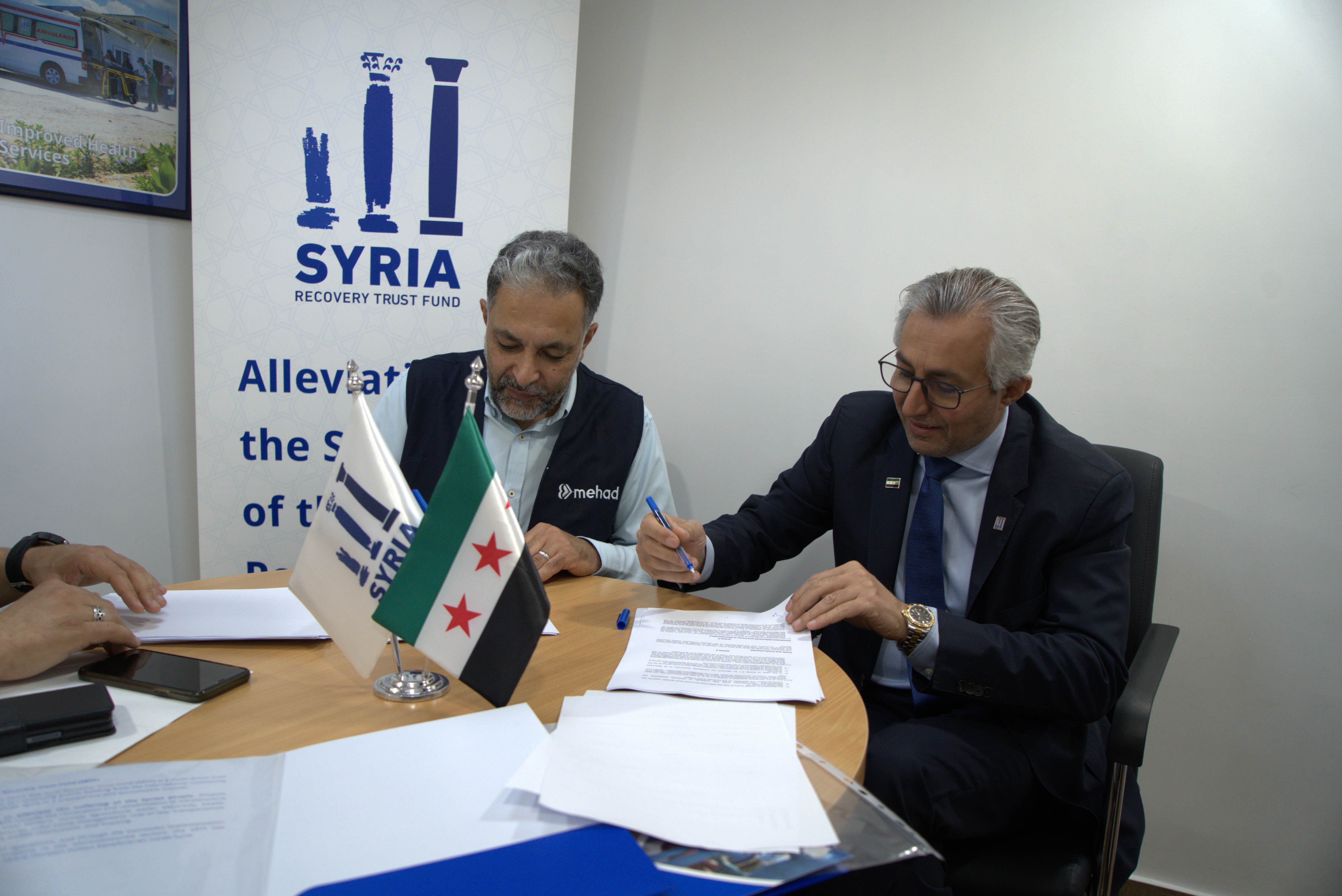 Damascus - Thursday, 30 October, 2025 - The Syria Recovery Trust Fund (SRTF) announced today the signing of a new financing agreement with MEHAD to launch Phase V of the ongoing health project, “Provision of Primary Health Care Services in Deir-ez-Zor Governorate.”